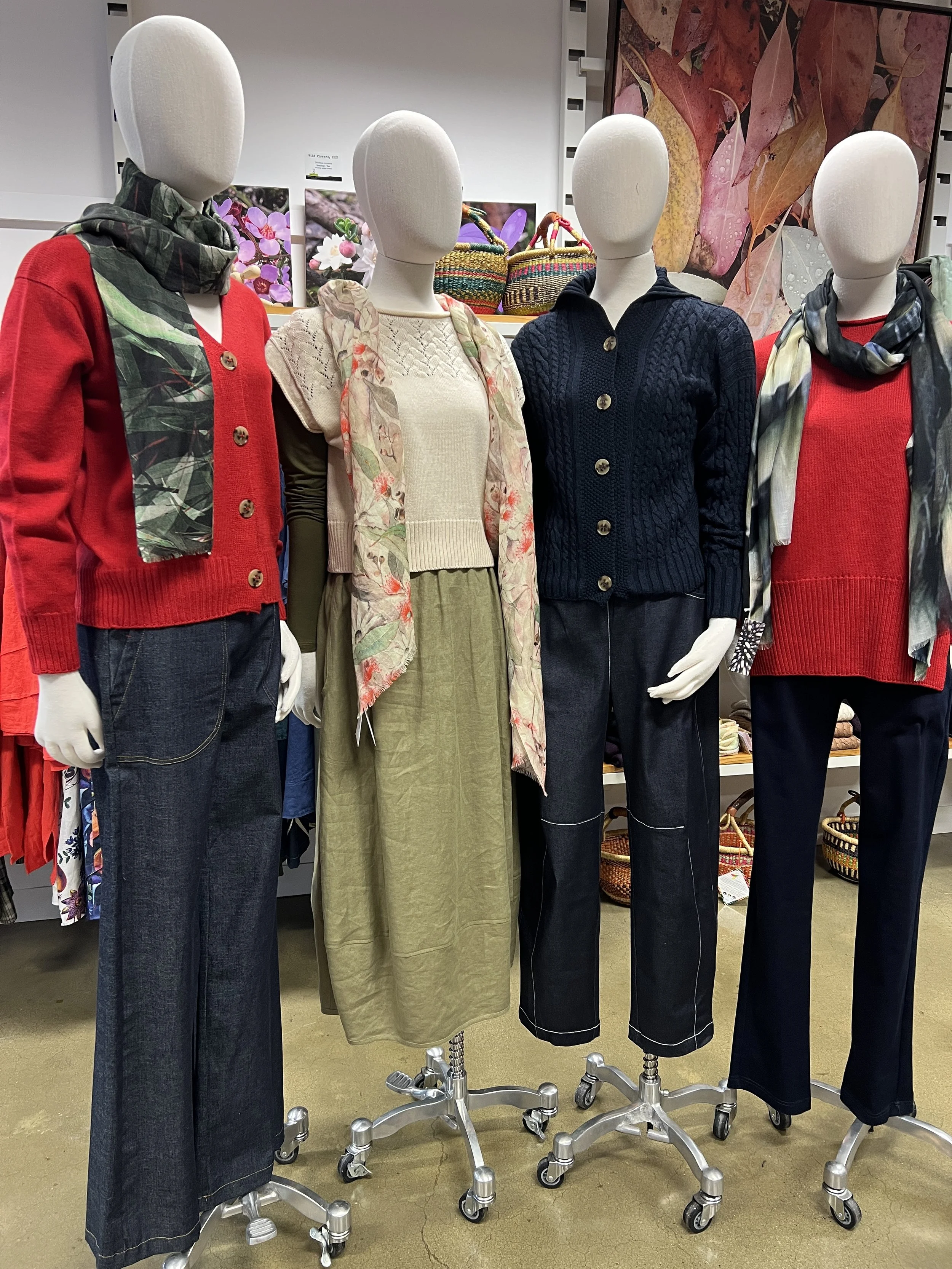 Idyl Pinwale Cord Jacket $229 NOW $160 Idyl Brushed Cotton Pant $190 NOW $133 United Fashions Long Cardi $240 NOW $168 Idyl Pinwale Cord Pant $169 NOW $118 Idyl Brushed Wool Jacket $268 NOW $187 Valia Acorn Travel Pant $329 NOW $230 United Fashions Long Wide Jumper $220 NOW $154 Miro Horseshoe Jean $299 NOW $200 Uimi Scarves NOW 30% OFF