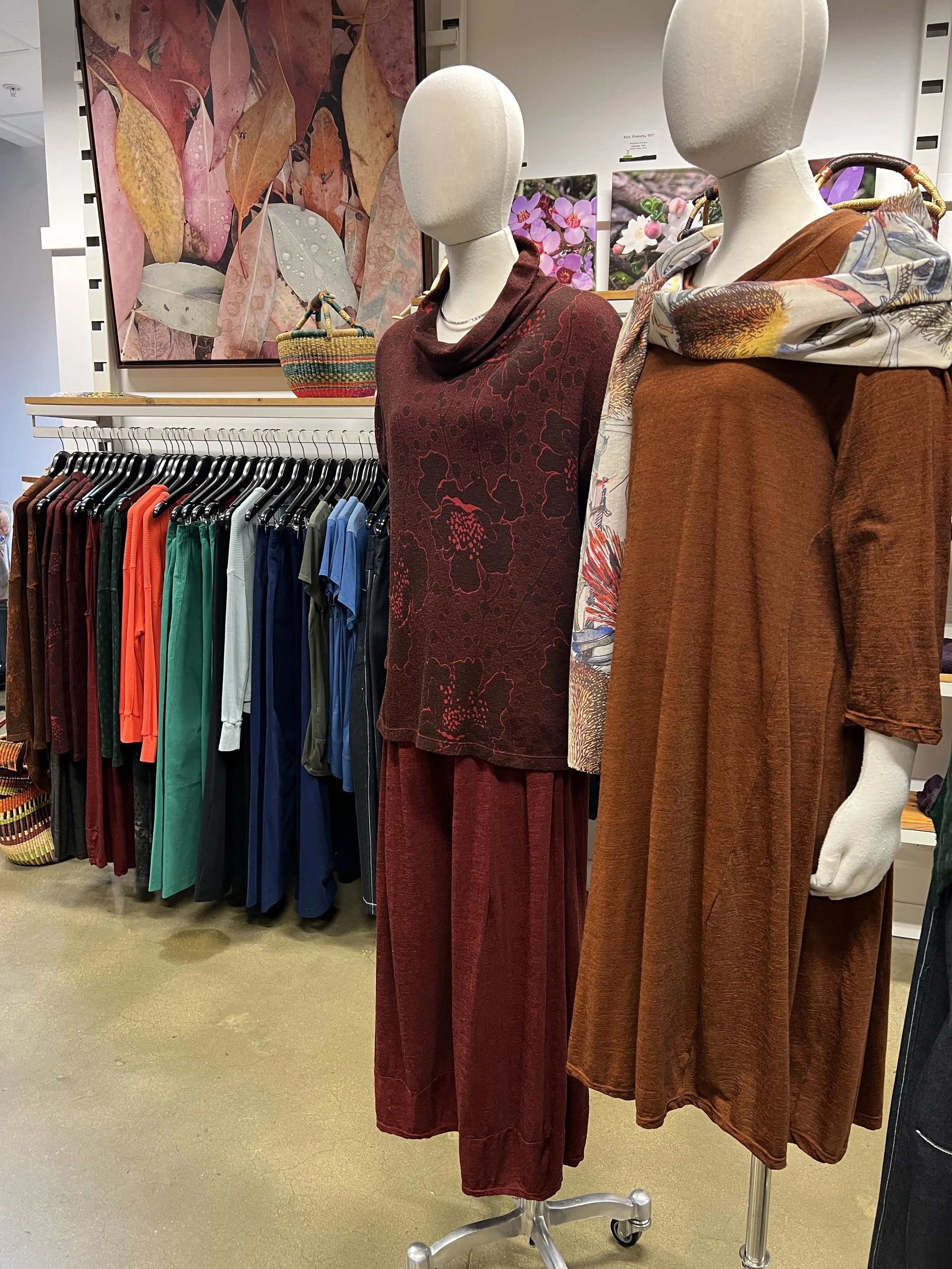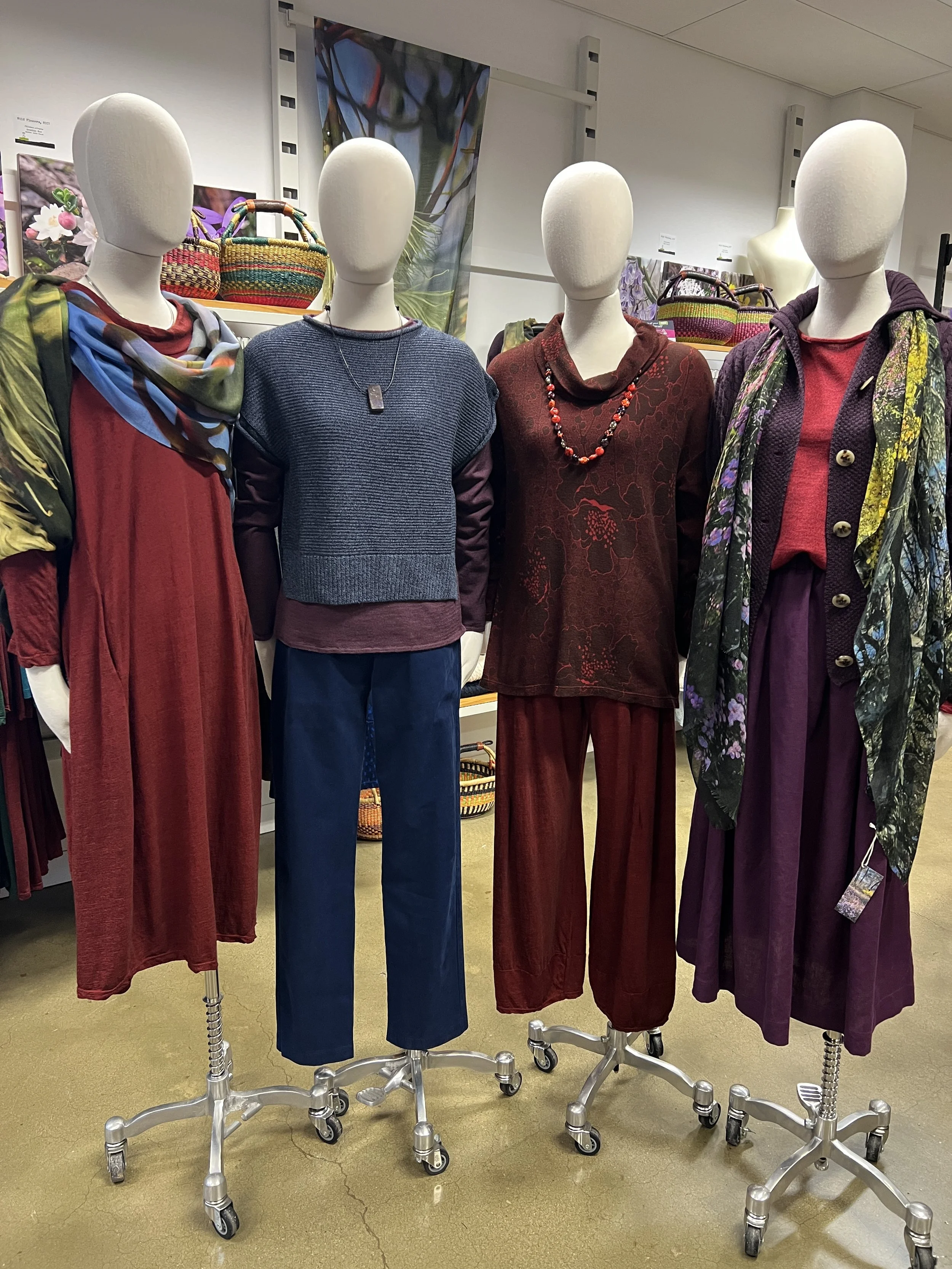 Valia Prado Dress $379 NOW $265 Uimi Etta Vest $189 NOW $130 Uimi Phoebe Top $189 NOW $130 Idyl Brushed Cotton Pant $190 Now $133 Valia Acorn Pullover $325 NOW $225 Valia Loden Pant $285 NOW $195 Uimi Phoebe Top $189 NOW $130 Uimi Frida Cardi $329 NOW $230 Zeega Frida Skirt $255 K8 Bush Scarves $85